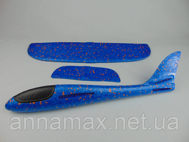 Яскраве забарвлення: Синій колір з помаранчевими вкрапленнями робить планер помітним у повітрі та привабливим для дітей.